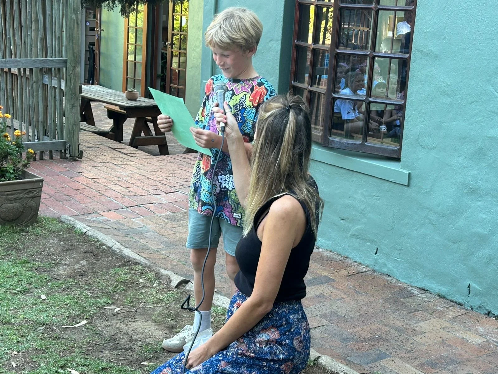 Begin mei kwam schrijftser Fiona Rempot op bezoek. Een wervelende week met het inspirerende bezoek. Voor de ouders werd er een lezing georganiseerd en voor de leerlingen een workshop. De leerlingen luisterden geboeid en tijdens de workshop op zaterdag gingen ze enthousiast aan de slag met het maken van prentenboeken en het verzinnen van verhalen.